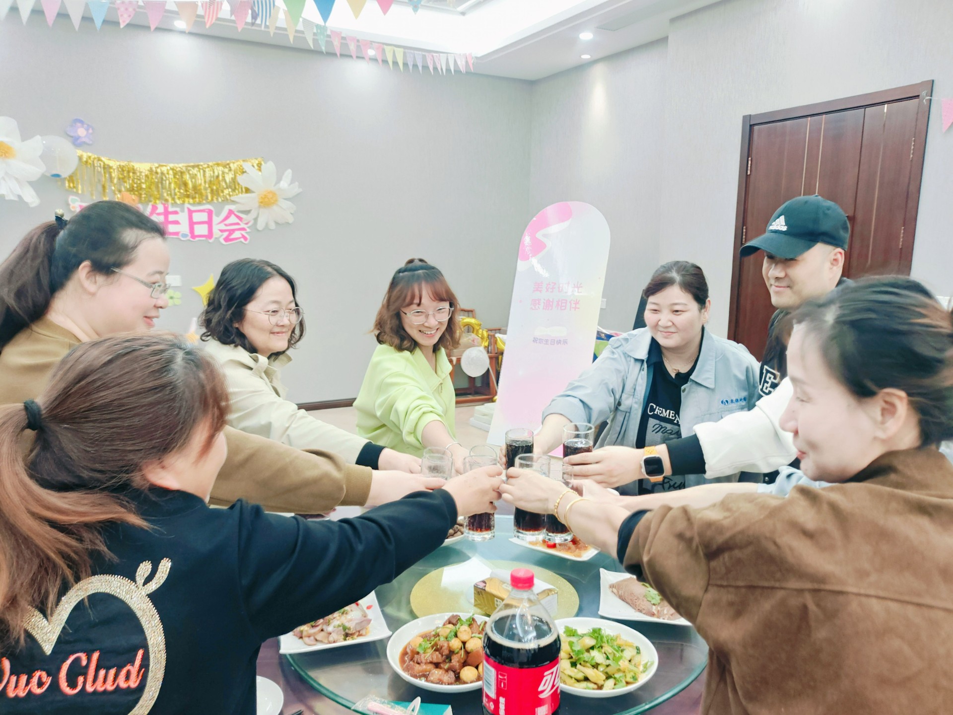 生日会互送祝福 在10月寿星们都聚齐后,人力行政中心经理金小明献上了自己对大家的生日祝福,并宣告生日会的开始。 大家在音乐声中共同举杯,为自己,为与自己同月出生的各位同事,大声说出一句“生日快乐”。